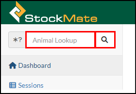 The Animal Lookup function is accessible on the StockMate Dashboard but is also available within the other functionalities on the menu.