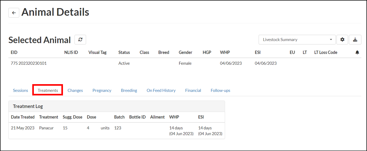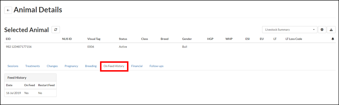 On the Dashboard input the EID, NLIS ID, Visual Tag or Society ID of an animal and select