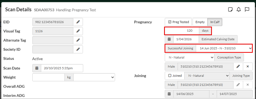 - At Pregnancy Testing the successful Joining is calculated based on the Joining dates from a. and b. relative to the Pregnancy Test Result.