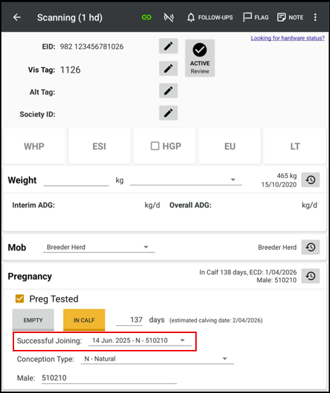 This functionality allows the Joining Male to be calculated based on the Pregnancy Testing results in relation to Joinings recorded in StockMate.