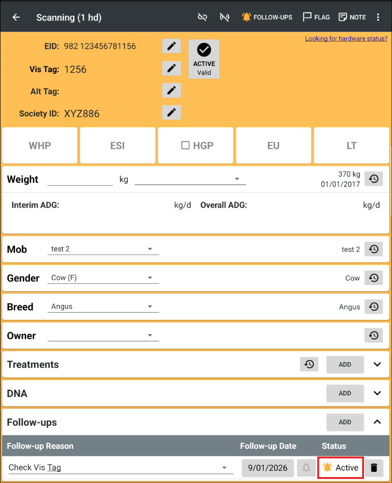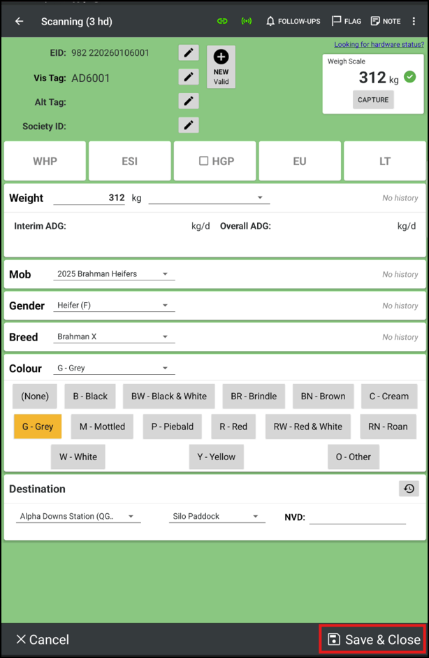 Scan the animal’s EID.
