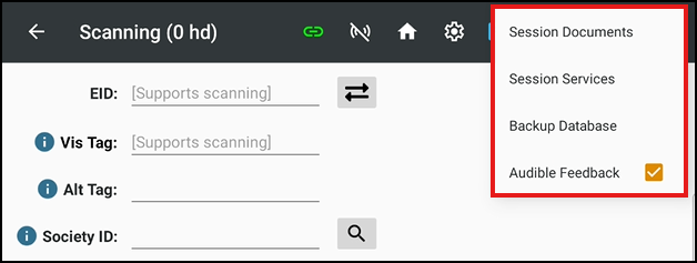 To include audible feedback in the Scan Session, tap