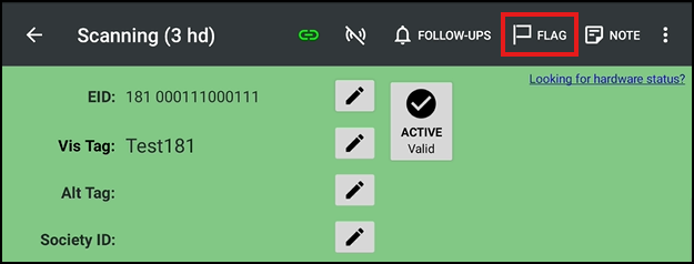Tap Flag to flag a particular animal. This will be visible in the session