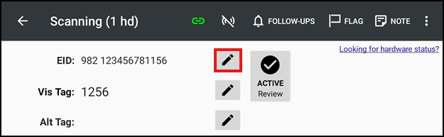 to edit EID or Visual Tag, then scan or enter the replacement tag number.