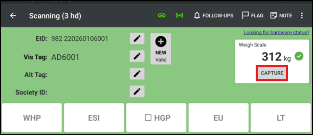 If connected to a weigh scale, tap Capture to capture weight (if required).