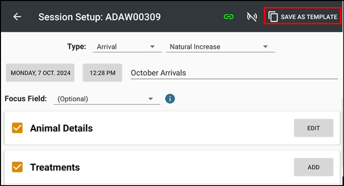 Session Templates can be setup on the web. These will then be available for use on the Tablet in a Scan Session. When setting up a Session Template, there are seven sections on the Session Template Setup screen: Animal Details, Treatments, DNA ...