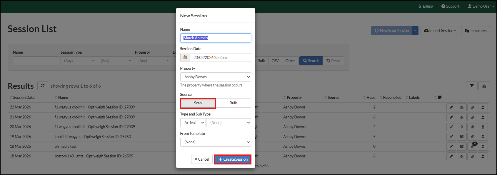 Scan sessions are used when scanning individual animals for Arriving, Handling and Exit. Creating a Session A Session can be created on the web or the app. For instructions on creating a Session on the web, refer to Create New Session – Scan Session ...