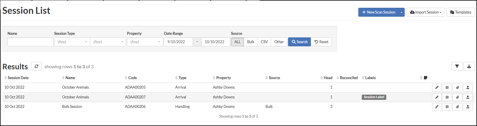 Scan sessions are used when scanning individual animals for Arrival, Handling and Exit.
