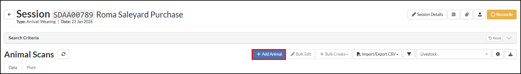 - Additional animals can be manually added to the Scan Session via the web. Alternatively, the animals can be added to the same Session, via the app. The Session created on the web will be available in the app after sync. Refer to Edit Existing Session (app) for more details.