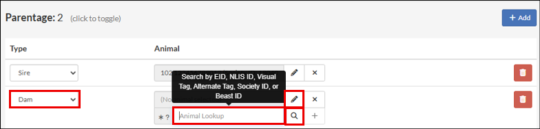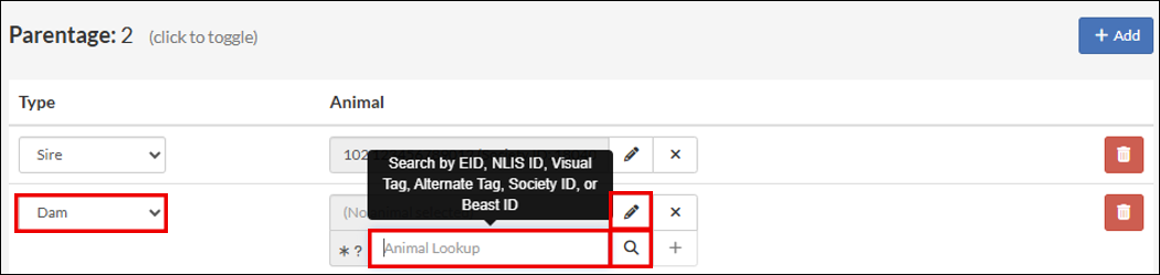If Sire/Dam already exists in StockMate, only one identifier is required to be populated to link to the existing animal.