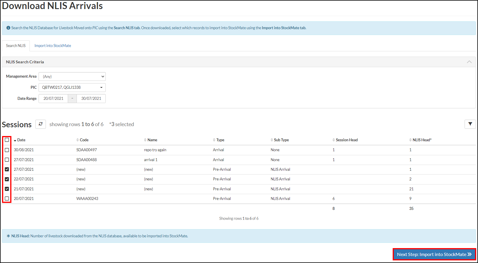 Download NLIS Arrivals can be used to import the NLIS Arrival information against existing StockMate arrival sessions, or to create a Pre-Arrival if the animals do not yet exist in StockMate.