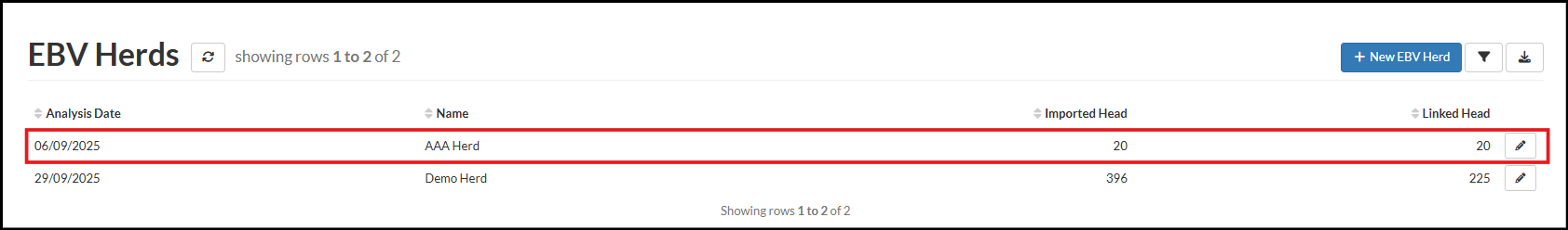When updated EBV values are provided, use the existing EBV Herd to import the file against. This will update the EBVs against the animals using the latest available datasets.