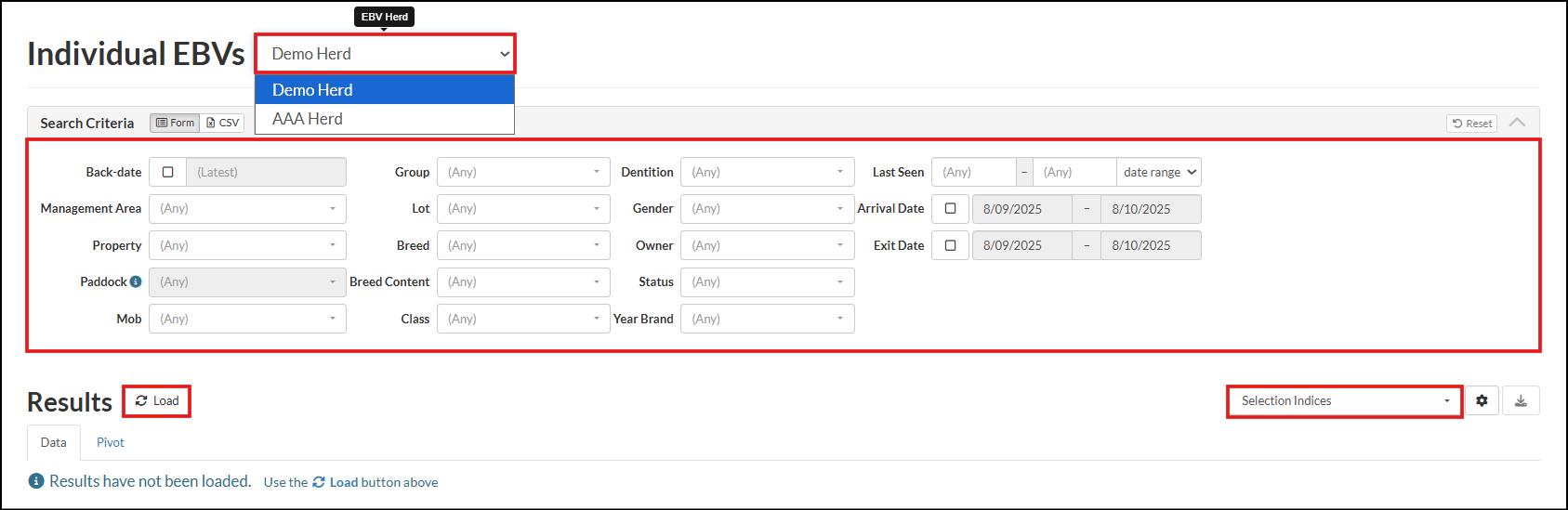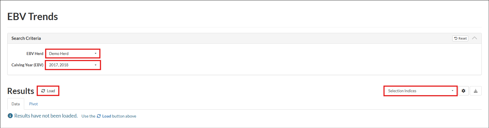 EBV Herd from the dropdown. Select the