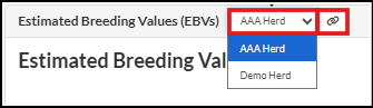 Switch between EBV Herds for multi-registered animals (animals applicable to multiple EBV Herds), by selecting the relevant