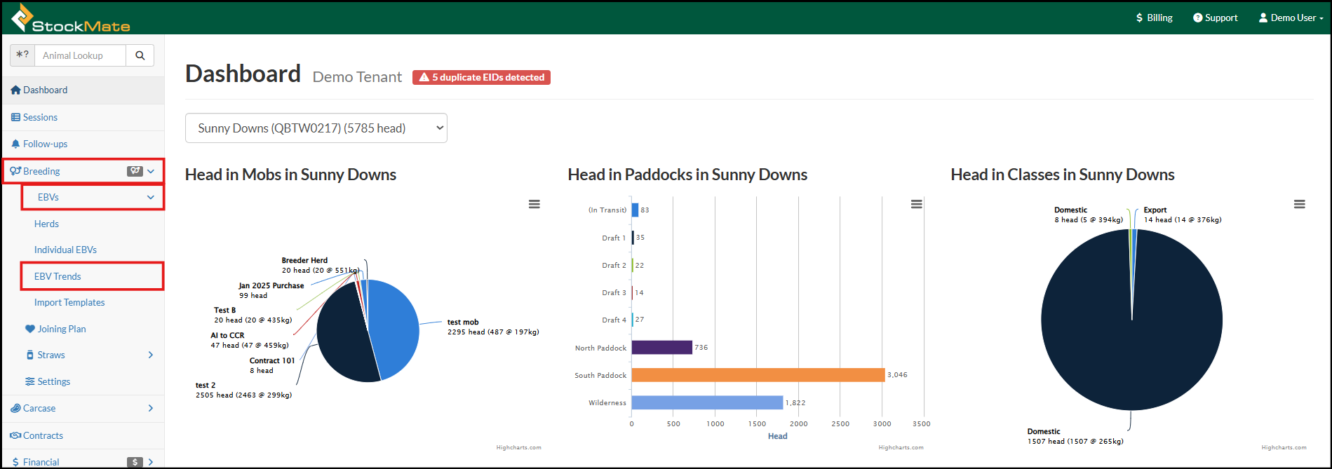 Once imported, EBV data can be viewed and reported on in multiple places across StockMate; on both the Web and the App.
