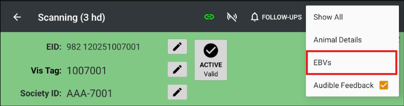 EBVs from the menu.