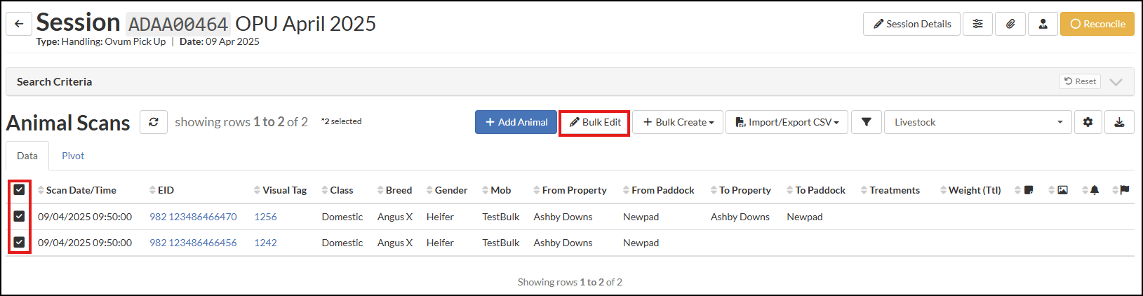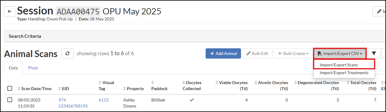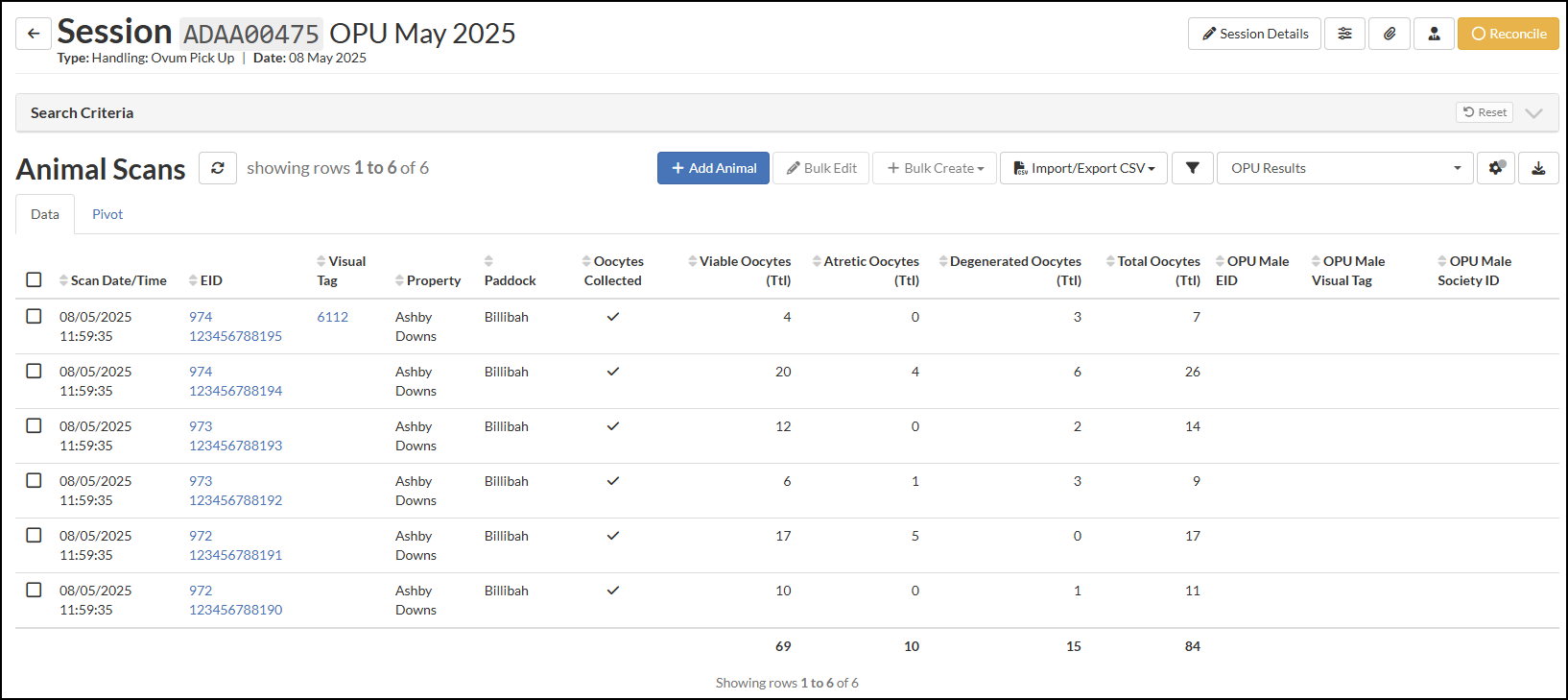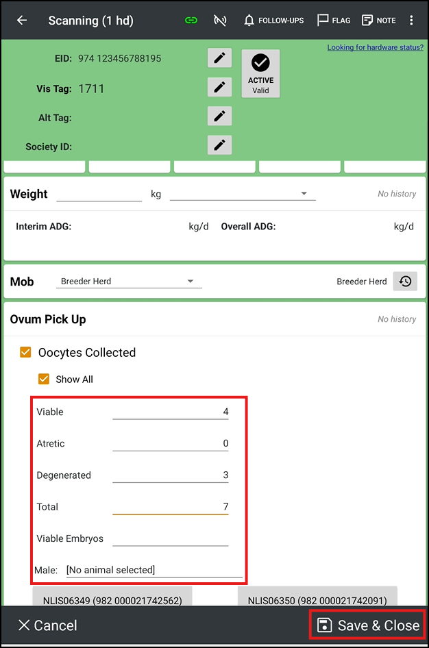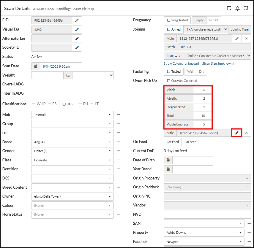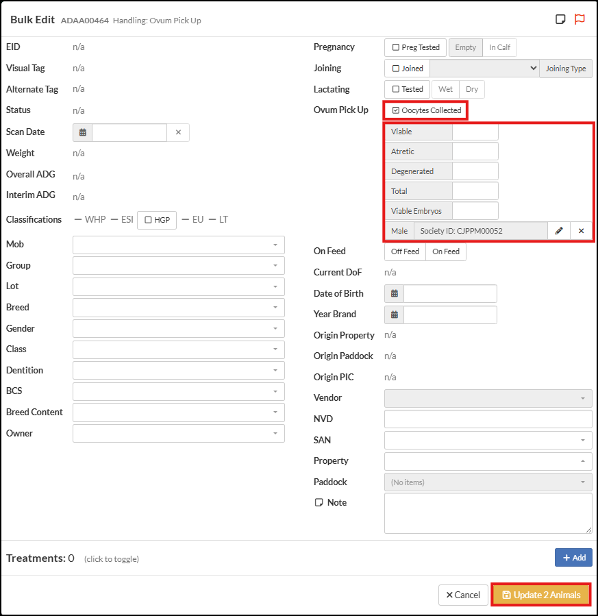 to open up the Animal Lookup search box. Input the details of the Oocyte Male, i.e. to nominate the Male who's Semen is used for fertilisation. Use