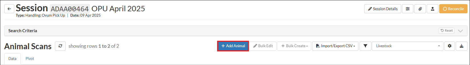 + to add a new animal via Society ID.