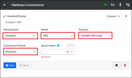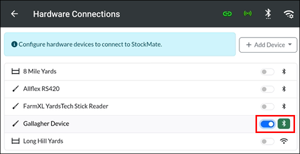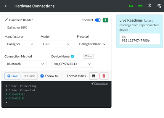Toggle the Gallagher HR0 EID Reader to connect.