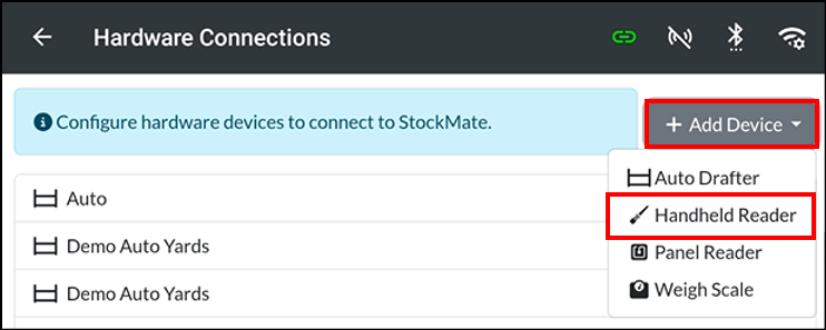 - Tap +Add Device, Handheld Reader.