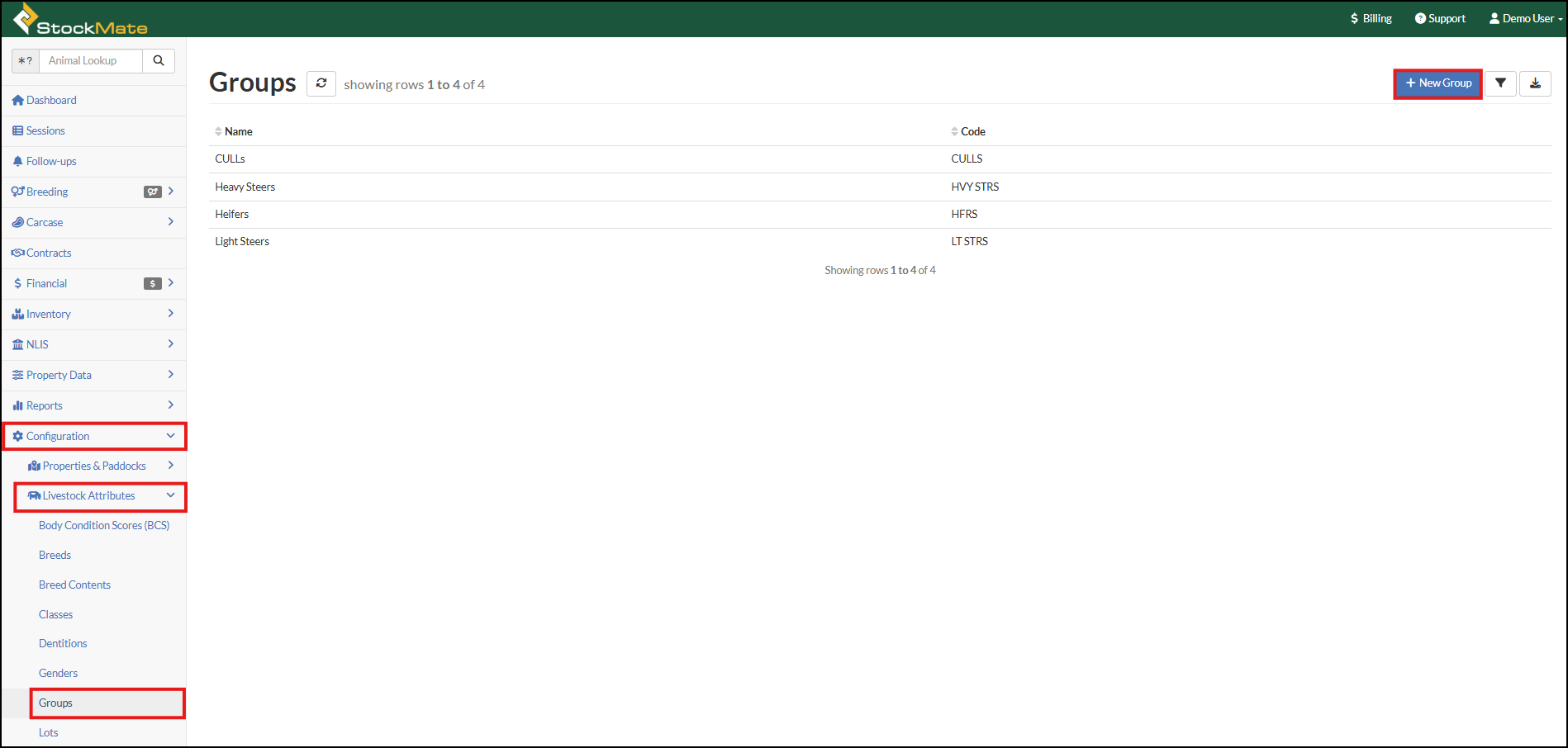 This is a pre-populated list in StockMate that can be added to or edited via the web & app. Setup Breeds on the Web To add to the list of Breeds, select Configuration, Livestock Attributes, Breeds, + New Breed. Enter the fields, Save. Assigning a ...